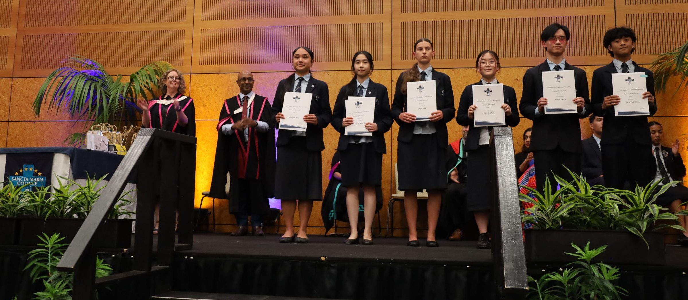 | Andre Bacale-Mercado Service to School Peer Support Leaders Top Scholar Religious Education, Mathematics, Science and Digital Technologies Kari Chun Outstanding Service to School Diligence in Mathematics Top Scholar Religious Education, Science, Commerce and Digital Technologies Nitheesh Fernando Chloe Ferrera Precious Garcia |