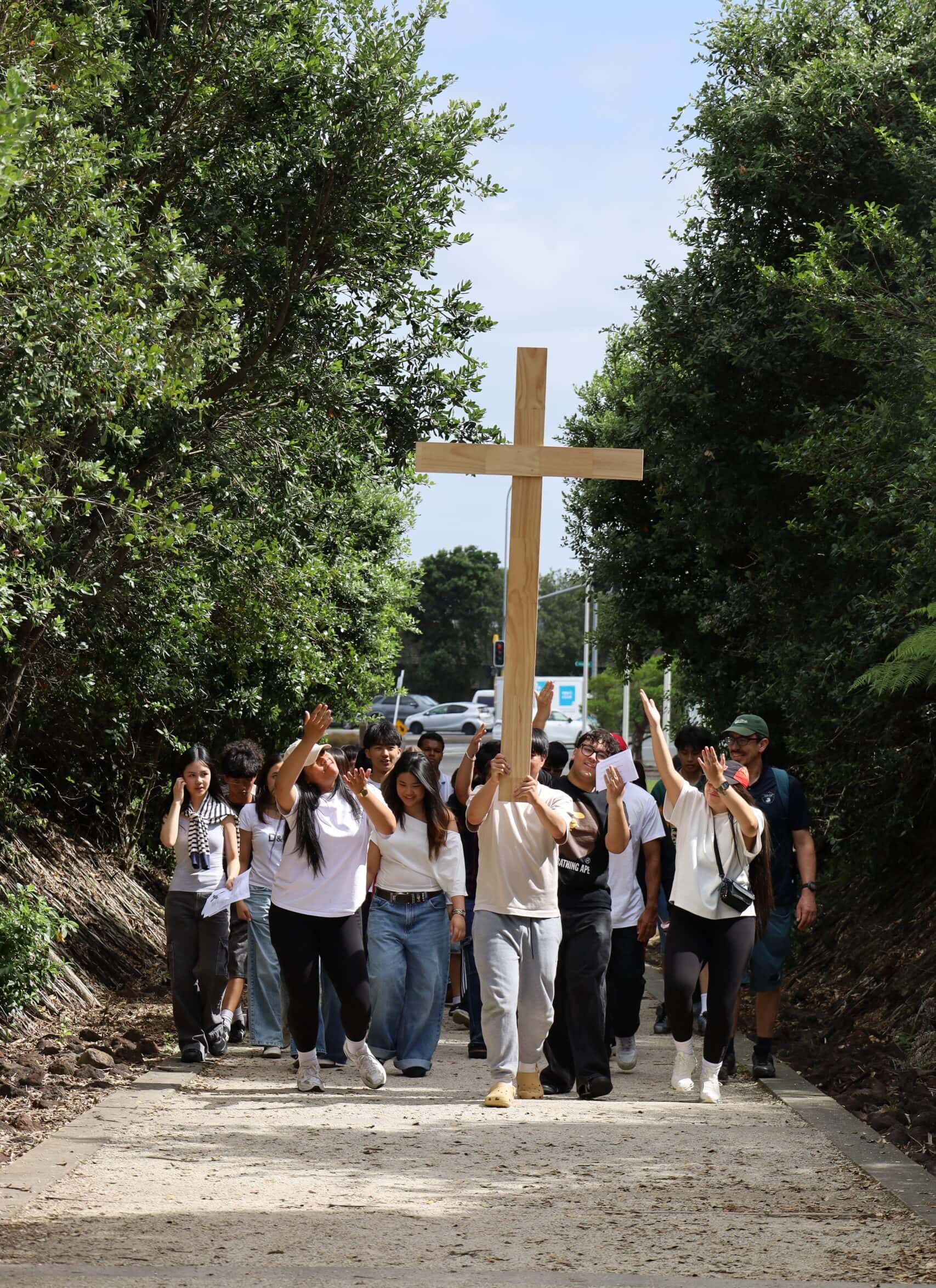 Mrs. Kubala’s discussions challenged our moral and ethical decision-making as we were given hypothetical situations that corresponded with biblical stories. During Mr Bidwell’s session, we journeyed through the stations of the cross, emphasising Jesus’ sacrifice, with each student carrying water buckets or the wooden cross throughout the park.