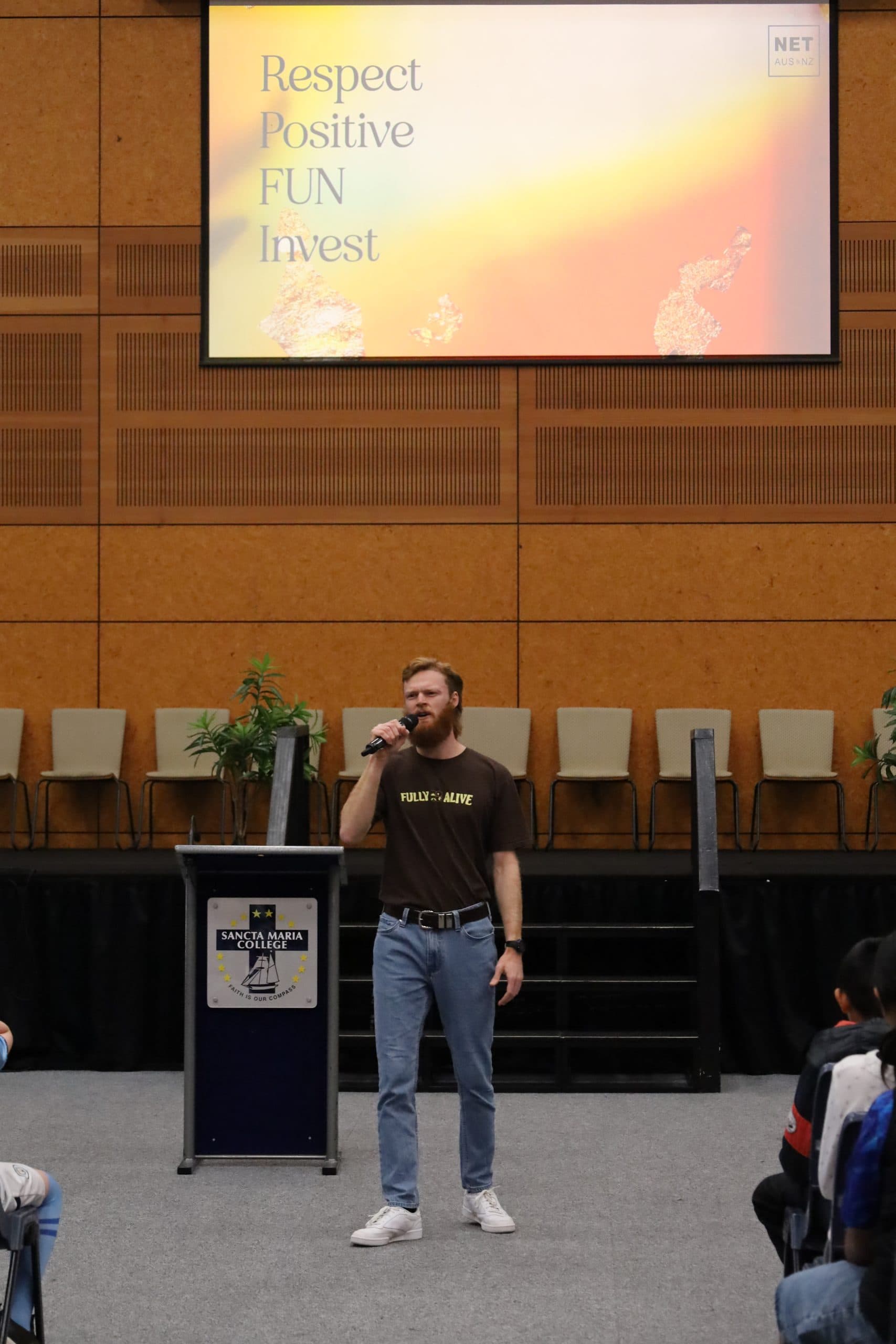 To start off the event and our first session, students had to sign themselves into the auditorium where the event was going to take place, and then students made their way to their designated seats ready and prepared for the NET Team to introduce themselves and explain the theme of ‘Wonder’ that was the symbol of the whole retreat. Before commencing the educational and faithful purpose of the event, we got to play a few games to ‘break the ice’ around the auditorium, which included ‘Chicken Noodle’ Tag where one person was blindfolded and had to run around and try to tag people with a noodle to get as many people as possible.  Our next game was then a game called “A single Crisp Clap” where one of the NET team members started off the game by saying “On the count of three, we’re all going to give one single, crisp clap”, then they count “One, Two, Three”, and once they say three, everyone in the auditorium has to all give a single crisp clap and to get the perfect synchronisation which we were all a bit off at first but we improved after a few attempts.